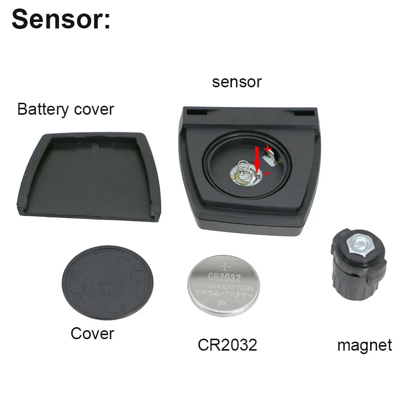 Screw the magnet on spoke. Then use zip tires to fix the sensor on the front fork by the same side of spoke magnet. Then, adjust the distance of magnet and sensor, and keep its relative position in 3mm (the smaller the batter, in the basic of not touching each other). The spoke magnet can work effectively while mounted against both sides of sensor; but not works when it was attached against the middle of sensor.